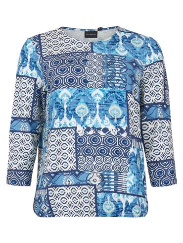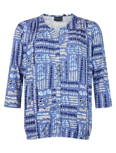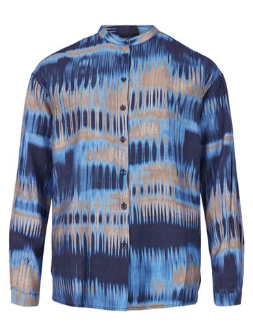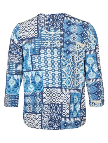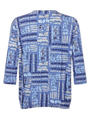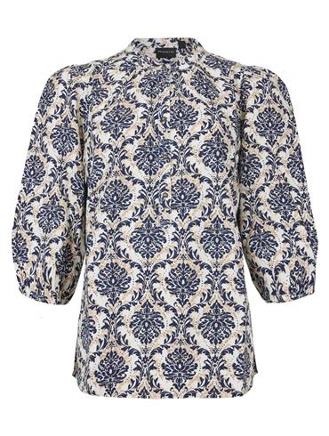 Brandtex Bluse 3730 Blå mønstret med hvid og beige.