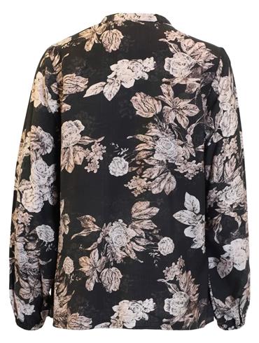 Signature Bluse 2800 Sort m. rosa-beige blomster.