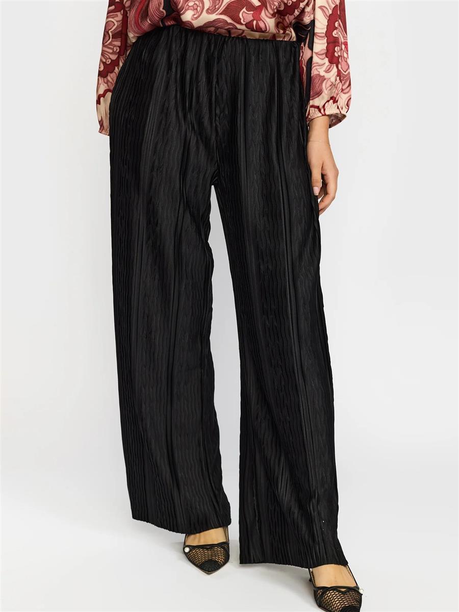 En elegant buks i sort med brede ben fra mærket 2 Biz. Kai buksen har en behagelig pasform og er perfekt til både hverdag og finere anledninger.