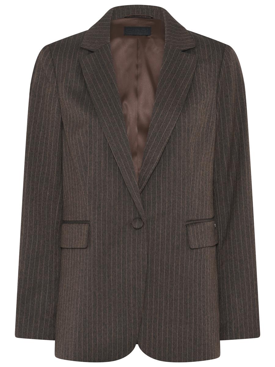 Blazeren er brun med nålestriber og med en let figursyet facon.