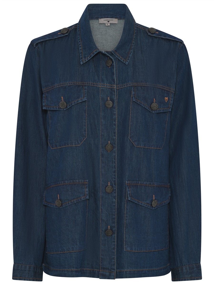 Jakken er gennemknappet med 4 påsyede lommer foran.