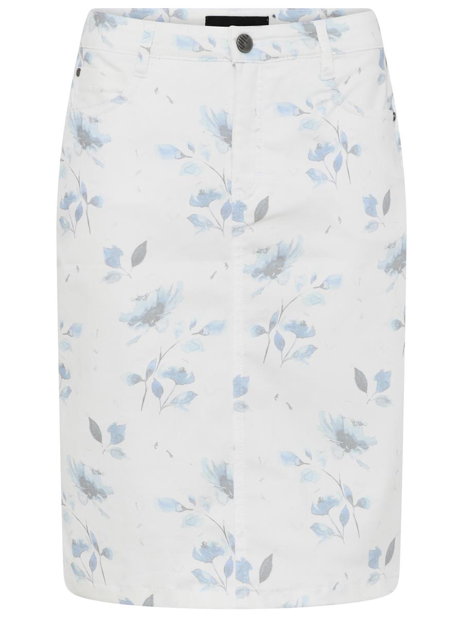 Nederdelen er i et smukt blomster print. Den har lommer både for og bag og bæltestropper.