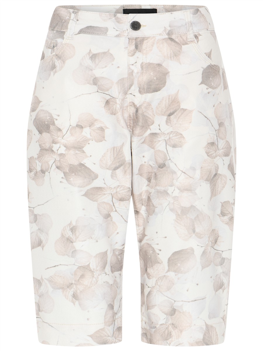 Buksen er i et smukt lyst print med diskrete bladaftegninger.