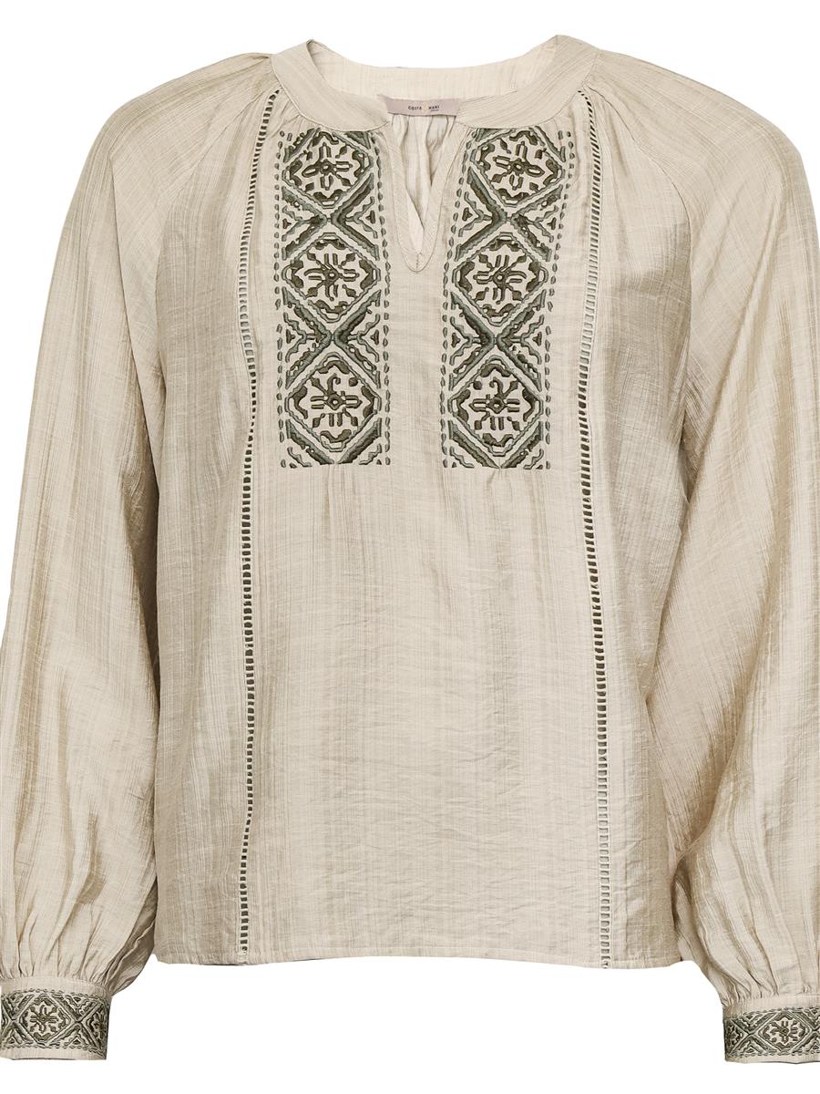 Super smart bluse fra Costamani. Blusen er en løs model med lange ærmer. Meget fint broderi på fronten og på ærmet. Blusen har desuden et flot hulmønster både foran og bagpå.