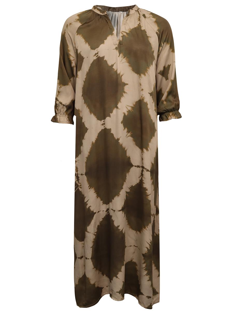 Enkel og smart kjole fra Costamani. Kjolen er løs i modellen og har et lille V i halsen. Ærmet er 3/4 langt med elastik forneden.