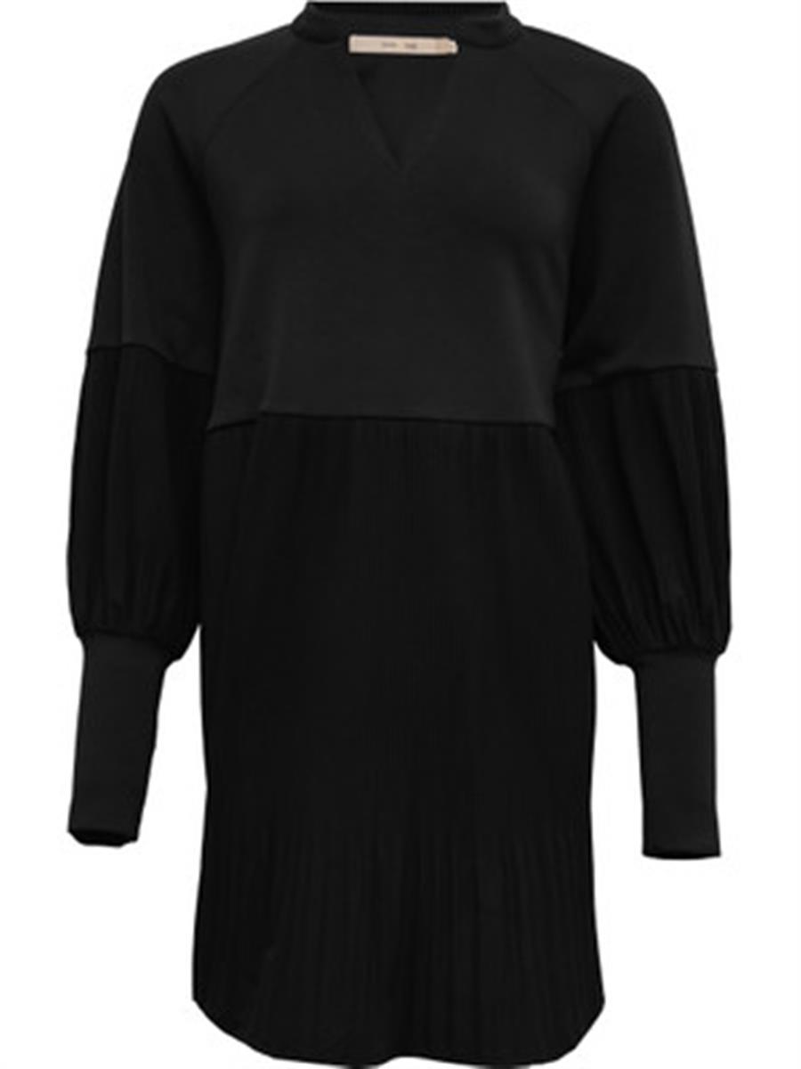 Cool og trendy kjole fra Costamani. Kjolen er med plisseret ærmer og skørt og har lange tætsiddene manchetter. Den er med V-hals og løs moddel. Kjolen er fin som den er, men også over en buks.