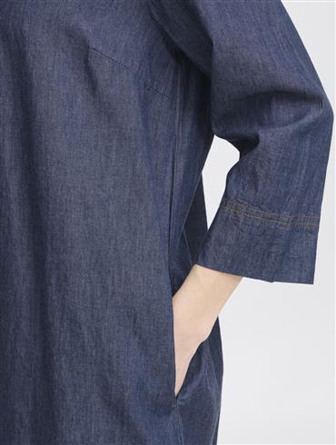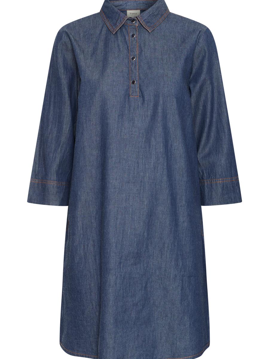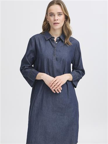 Skøn denimkjole fra Fransa i 100% bomuld med 3/4 ærme og krave.