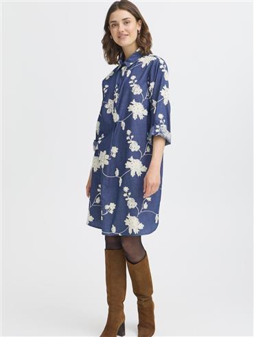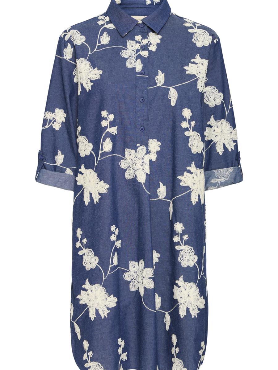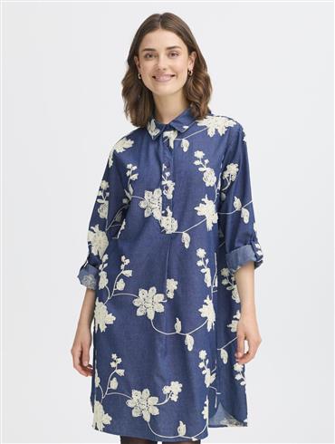 Smuk Skjortekjole fra Fransa med hvide broderet blomster på.