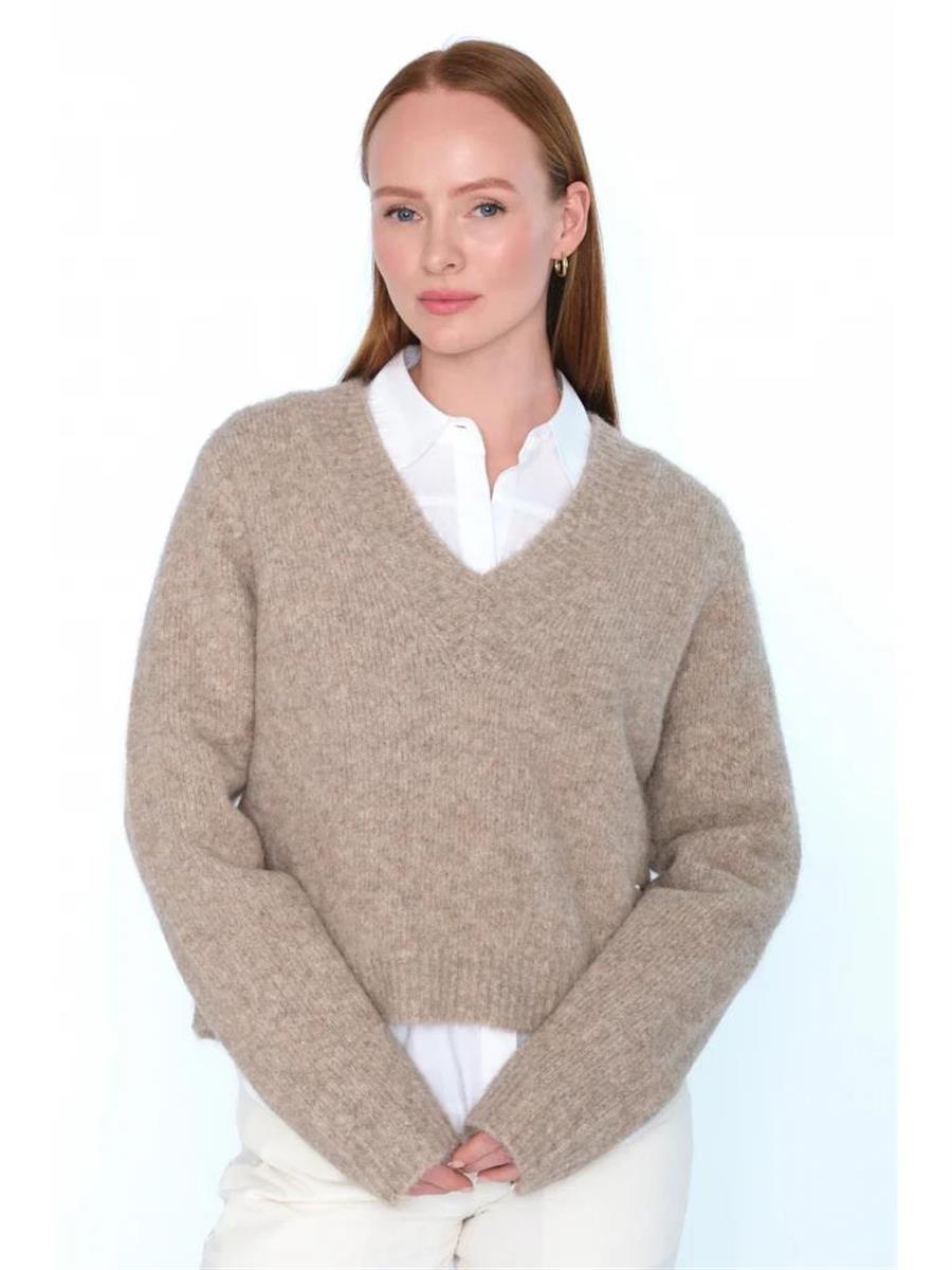 Super cool og lækker strik fra HÈST i kort model og med V-Hals. Strikken er en anelse længere bagpå og har er stort broderet "H" både foran og bagpå.