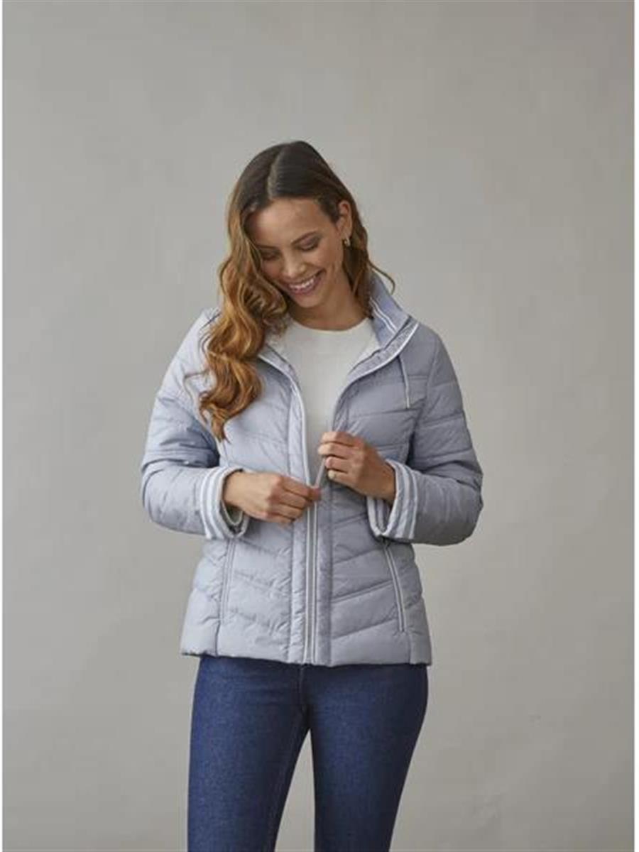 Smuk quiltet jakke i maritimt look med slids ved ærme og hætte i kraven.