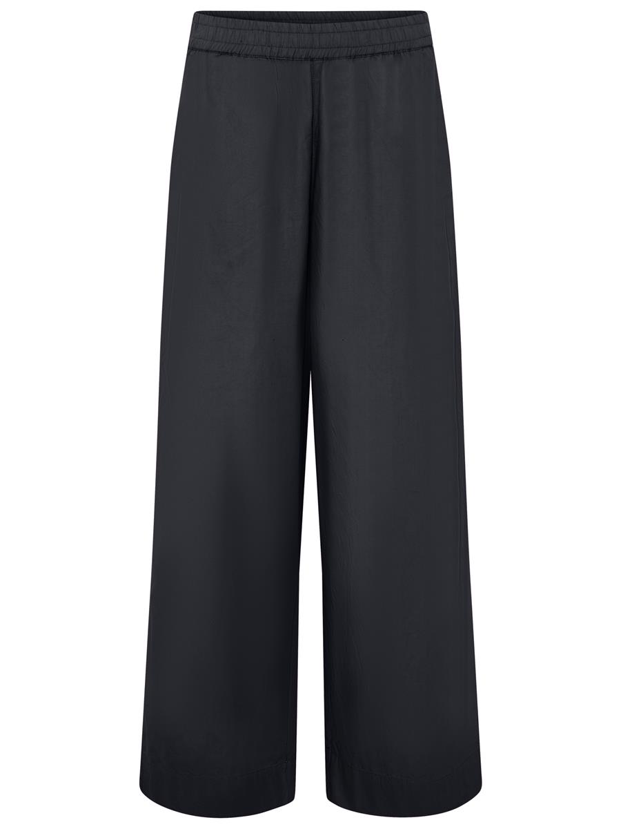 Bukserne er med brede bukseben og et bredt elastik i taljen.