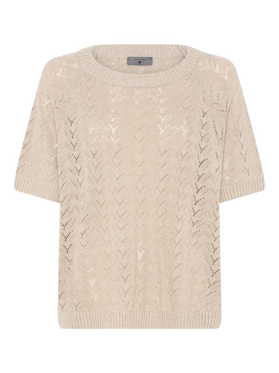 Smuk kortærmet strik fra Lundgaard i det fineste pointelle mønster.