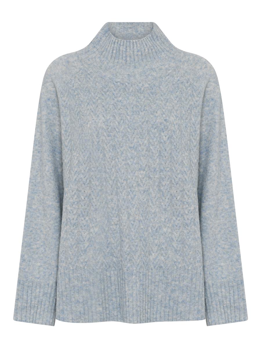 Trøjen er med bred rib langs kanten og turtleneck.