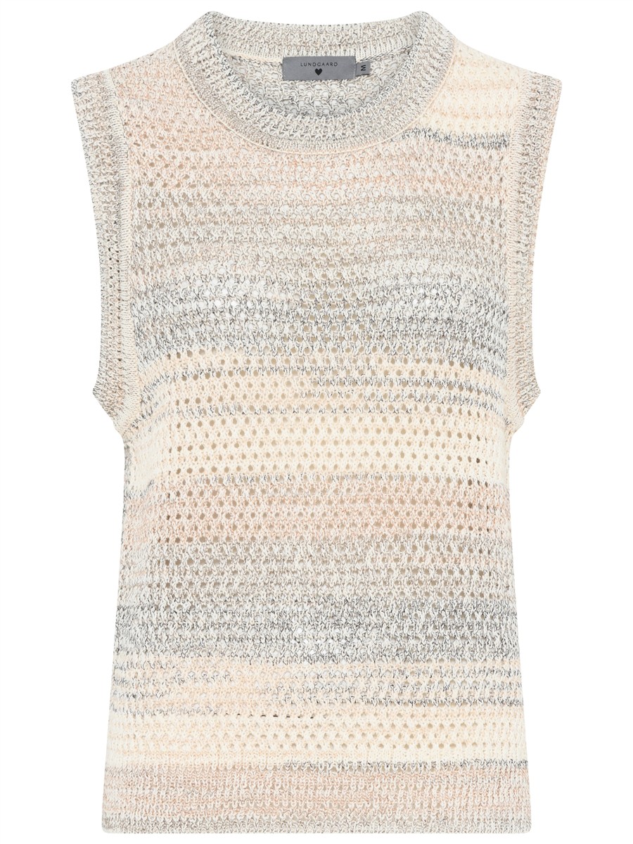 En let og stilfuld strikvest fra Lundgaard, perfekt til både forår og sensommer.