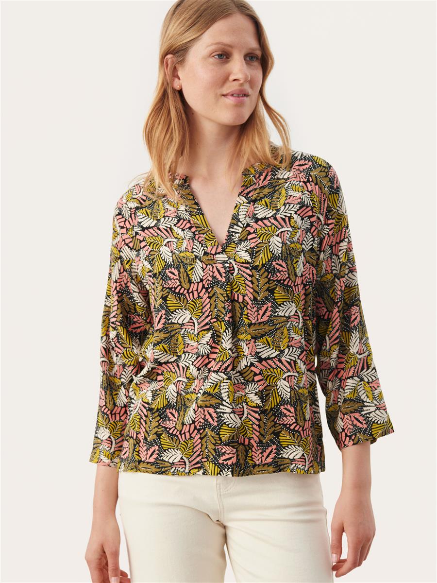 Blusen fra Part Two har 3/4 lange ærmer og et loose fit.
