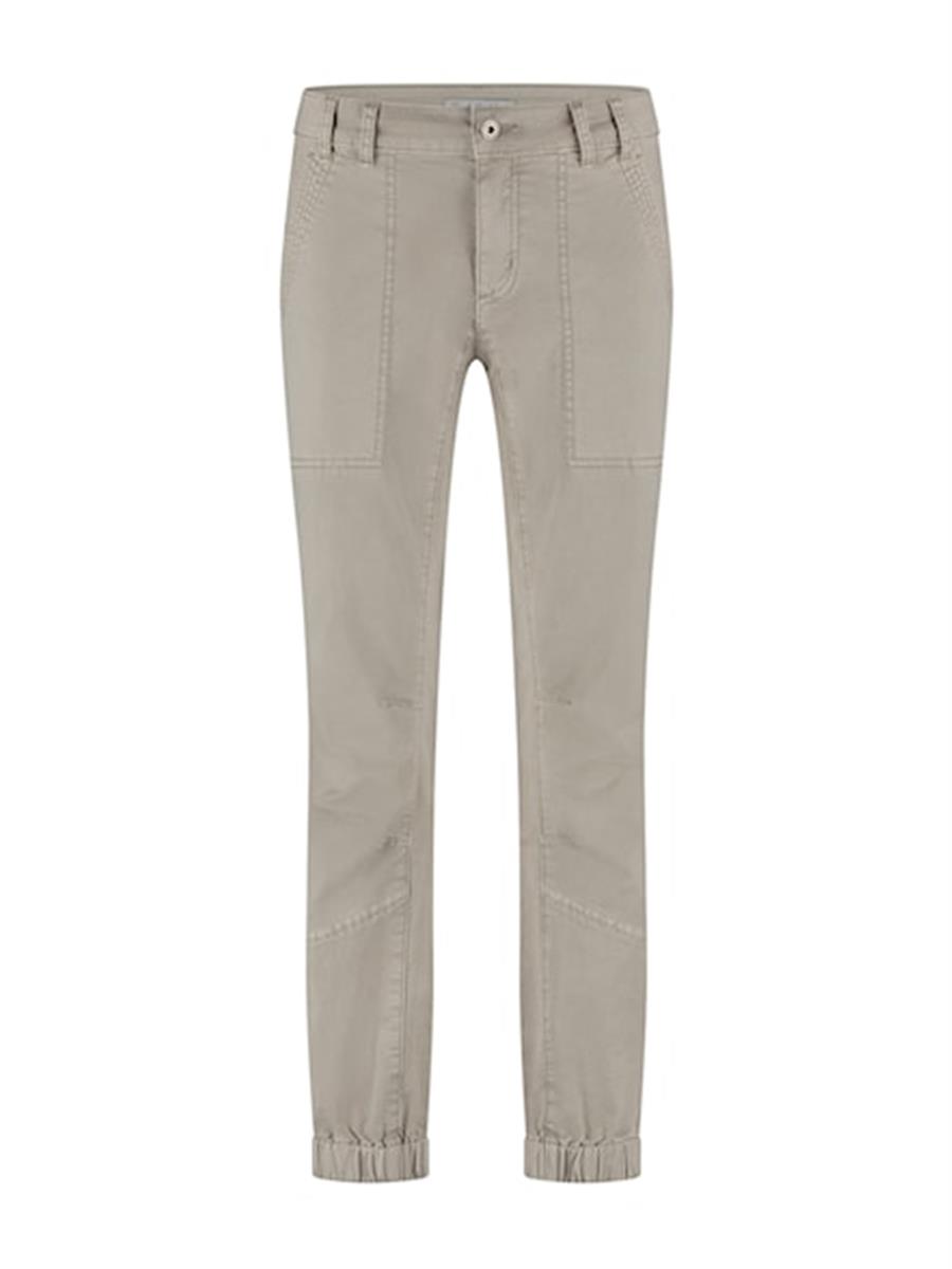 Joy bleach er en jeans med en afslappet pasform i flot sand farve. Bukserne er tætsiddende ved hoften og har en behagelig, løsere fornemmelse omkring benene. Buksen har store påsyede lommer, dekorative sømme foran og beklædt elastik ved benene. Lavet af stetch denim for ultimativ komfort.