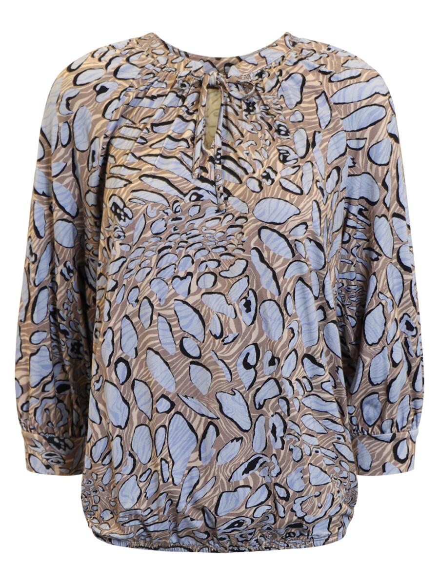 Flot mønstret bluse i blå, sorte og brune nuancer fra Signature.
