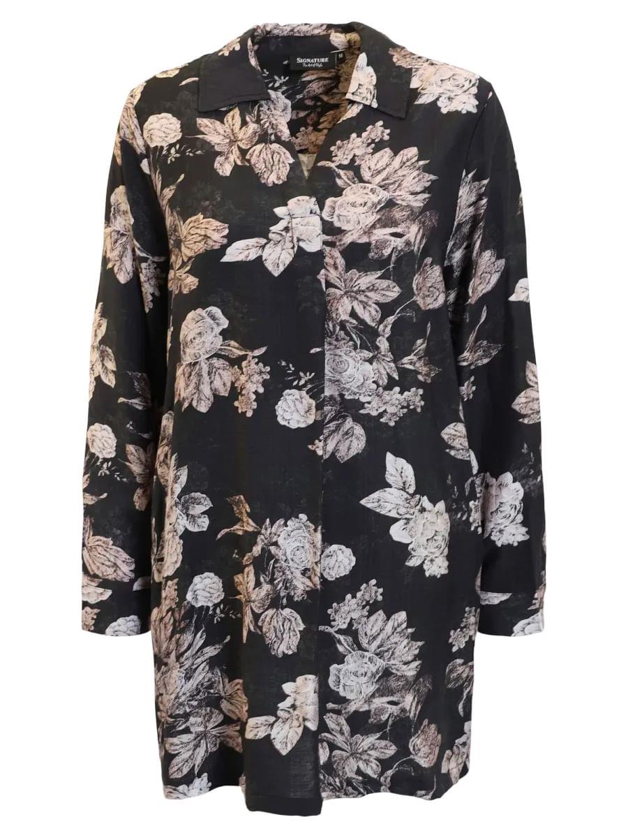 Elegant tunika fra Signature. Tunikaen er i let og behagelig stof med sort bund og toner af rosa-beige blomster print.