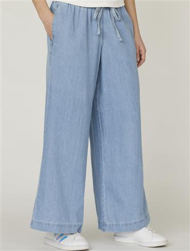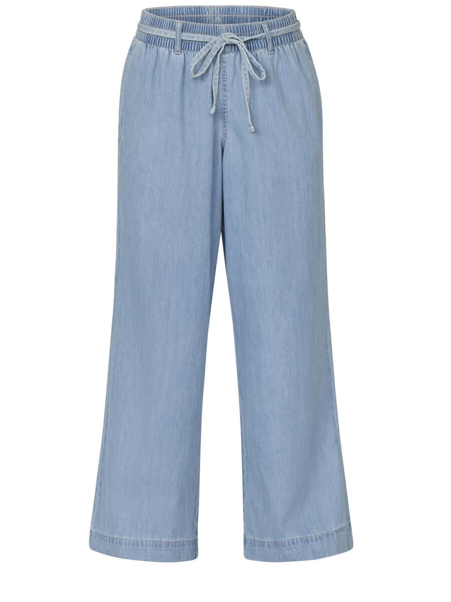 N.OSA-PA er en trendy denimbuks med brede ben, i et cool vasket denimlook. Buksen har en lomme i hver sidesøm, samt talje med elastik og snøre.