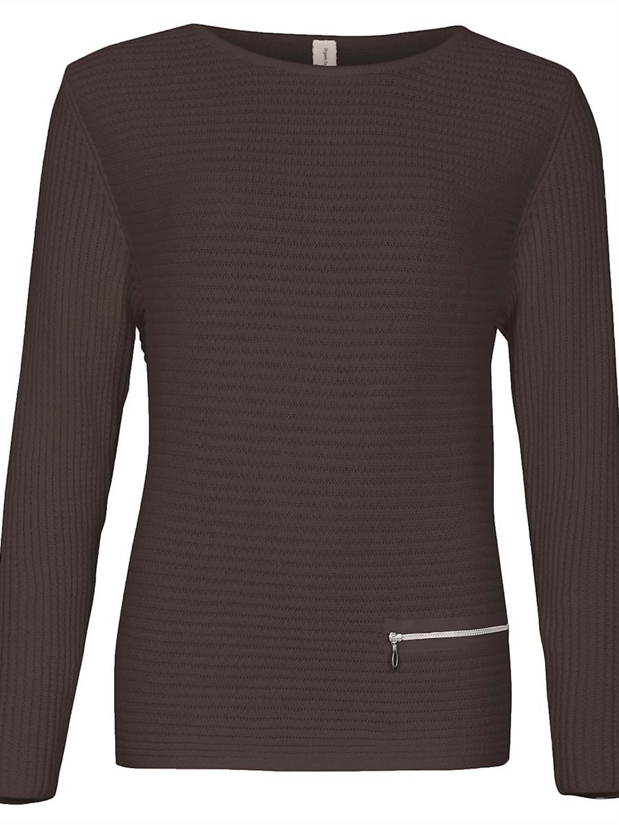 Inspireret af det skandinaviske, klassiske design er denne strik perfekt i alle garderober. En let anvendelig bluse, som kan bruges med både bukser, nederdel eller over en kjole. Skovhuus model 5353 har en rund hals og er strikket i rib, som løber i forskellige retninger. Ved ærmerne vender ribben således, at den løber lodret langs armene og på kroppen er dette ”lagt ned” så striberne fra ribben løber vandret. Dette giver et flot spil i strikkens struktur og giver en god pasform. Foran sidder en påsat lynlås som en lækker detalje.