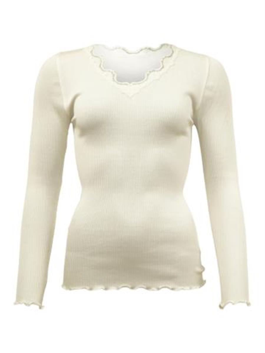 Silkebluse fra Soulmate i med en smuk blondekant omkring den runde halsudskæring.
