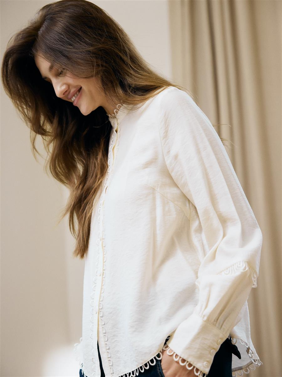Skøn bluse fra Soulmate. Blusen er med lange ærmer og er gennemknappet. Den har super flotte detaljer.