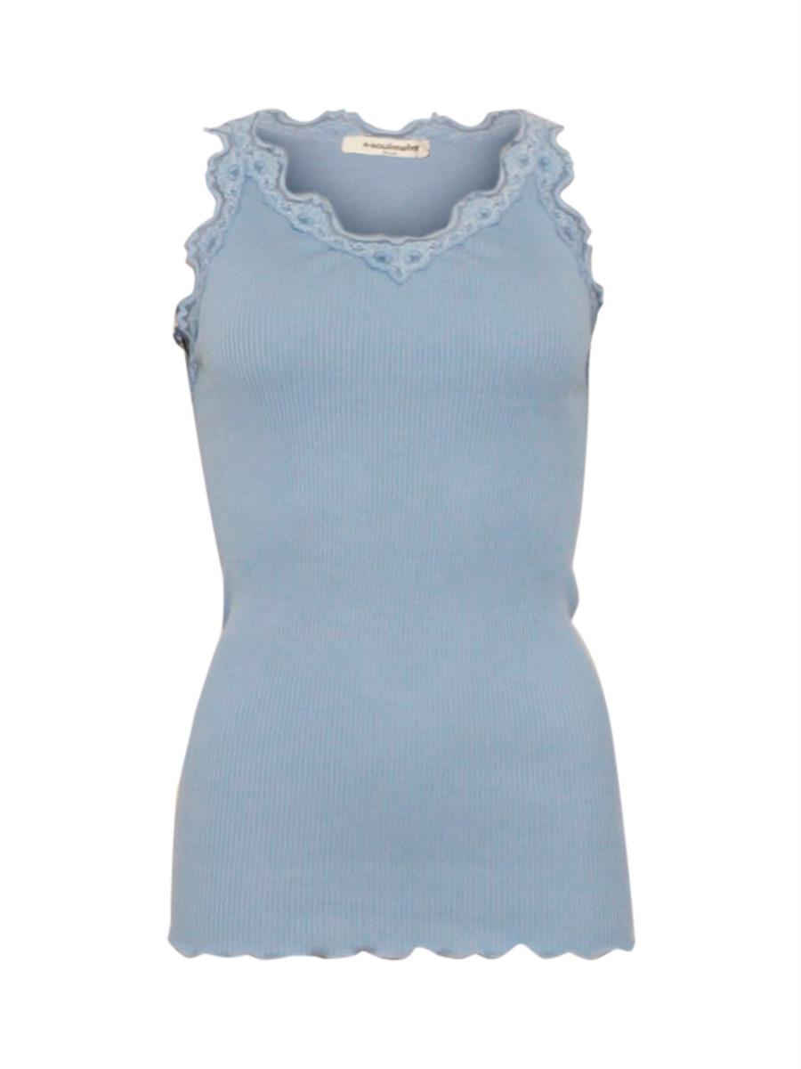 Silketop fra Soulmate med en smuk blondekant omkring den runde halsudskæring.