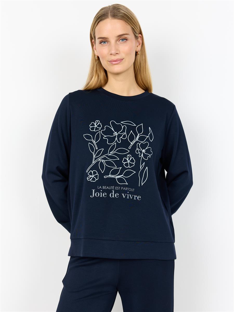 SC-BANU 287 er en sweatshirt lavet af 48% modal, 48% polyester og 4% elastan. Den har rund hals og et flot blomster print foran. Sæt den sammen med jeans eller leggings for et afslappet og behageligt look.