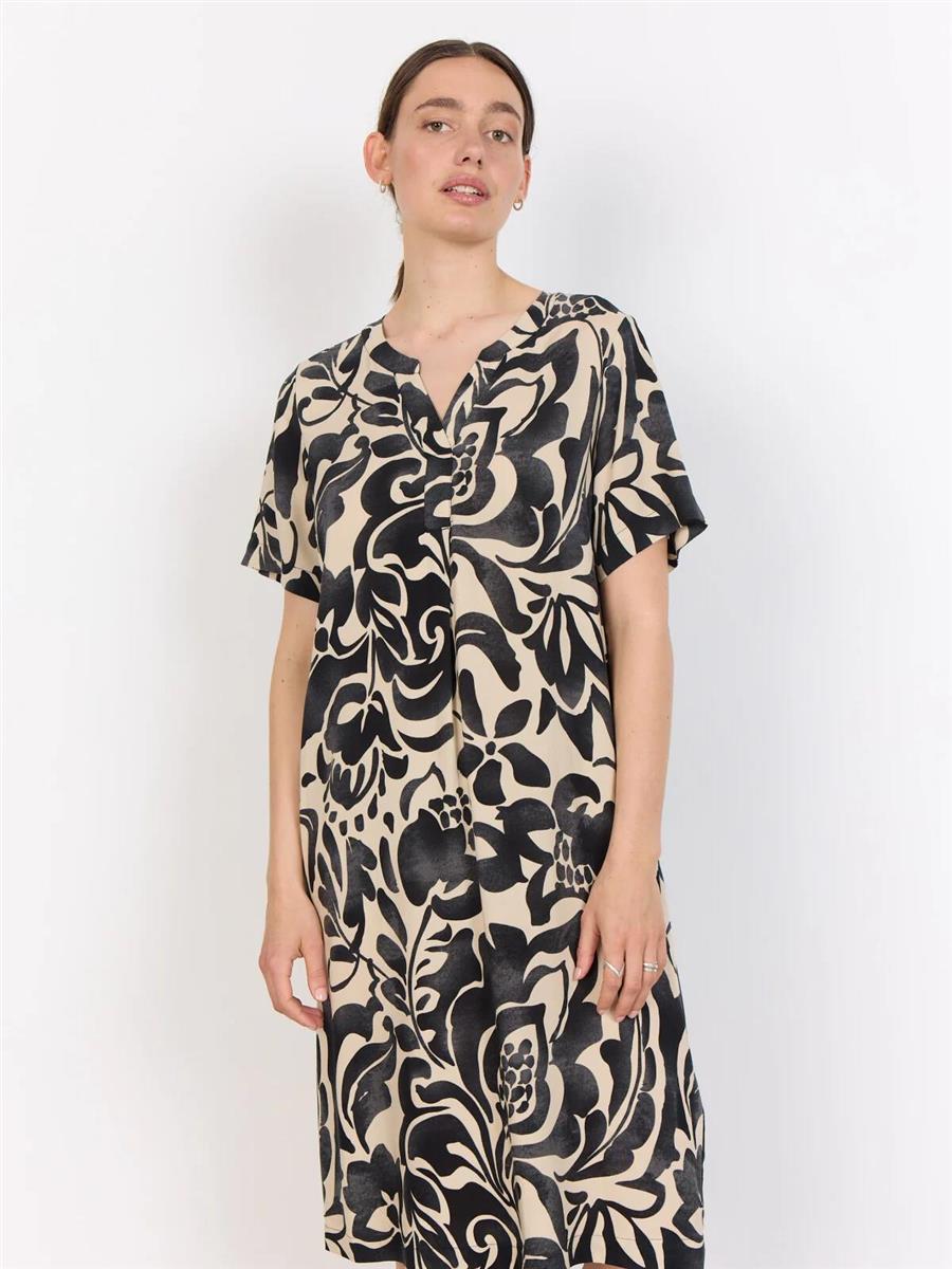 SC-SENTA 3 er en tunika fremstillet af 100 % LENZING™ ECOVERO™-viskose. Tunikaen har V-udskæring, korte ærmer og et dristigt blomsterprint og går til lige under knæet med en lige kant.
