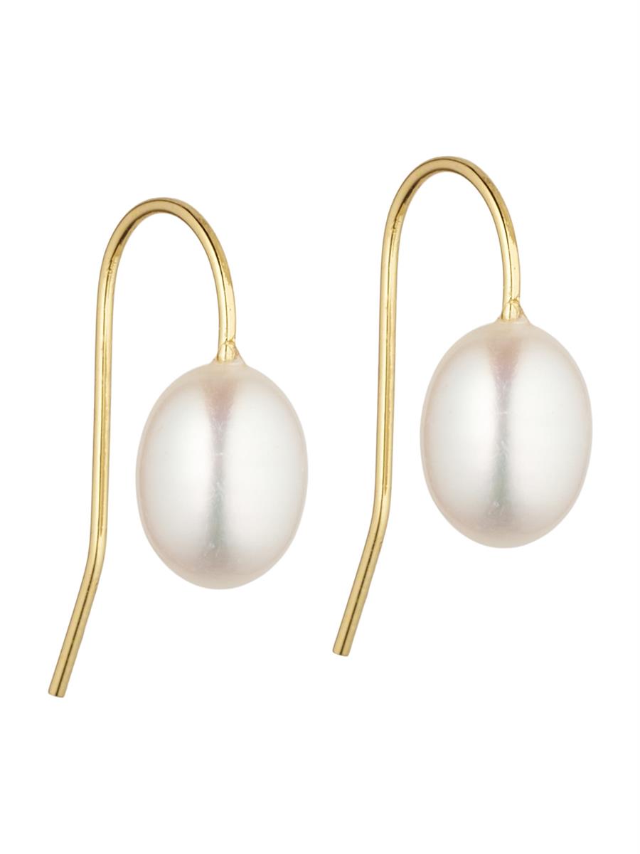 Enkel og klassisk perle ørering i guldbelagt sterling sølv og med natur perle for enden.