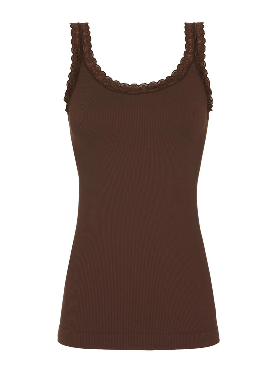 Lækker microfiber rib-top fra Tim & Simonsen med fin blondekant og rund halsudskæring.