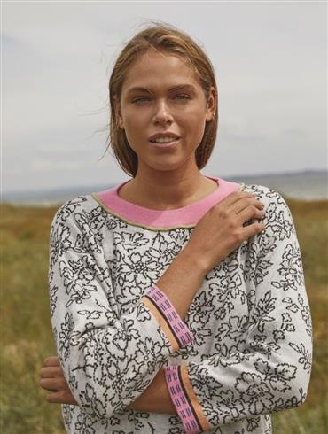 Lundgaard jacquard strik Hvid m. blomster