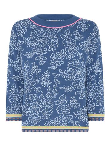 Lundgaard jacquard strik Blå m. blomster
