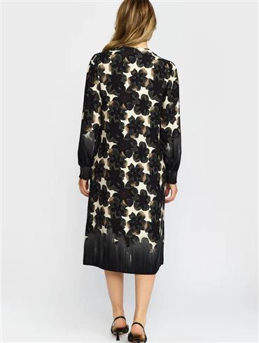 Smuk mønstret kjole med lange ærmer og smock fra 2-BIZ.