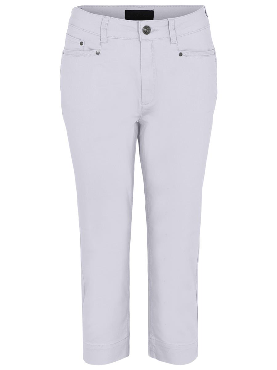 Buksen har 2 skrå lommer bagpå med en smart detalje samt bæltestropper. Nederst på buksen er der en lille slids. Den har en længde på 50 cm - perfekt til sommeren.