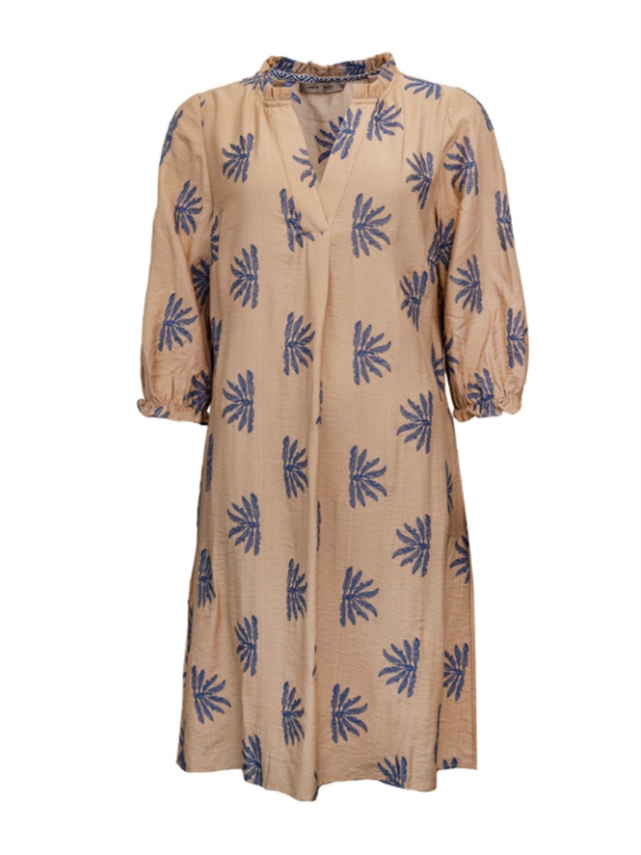 Sød kjole fra CostaMani med V-udskæring, lommer og 3/4 ærme.