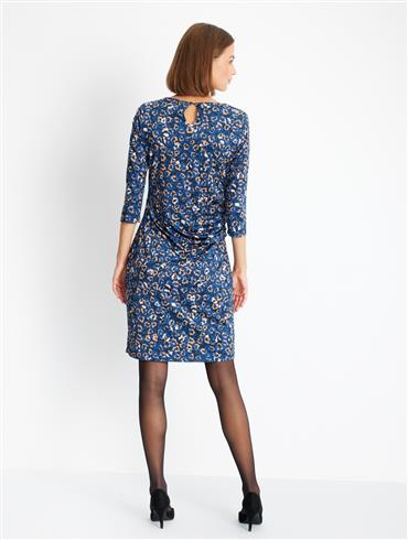 Sød blå printet kjole fra InFront. Kjolen er med 7/8 lange ærmer og rund halsudskæring. Kjolen går en smule ind i taljen så den rigtig fremhæver taljen.Kvalitet: 95% Polyester - 5% Elasthane