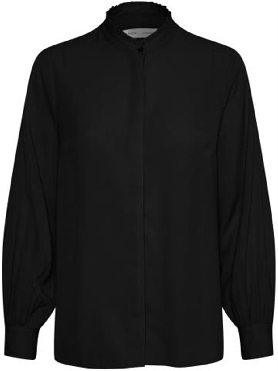 Den er med lange ærmer hvor der er en lille flæsekant på manchetten og ved halsen i en lækker kvalitet,