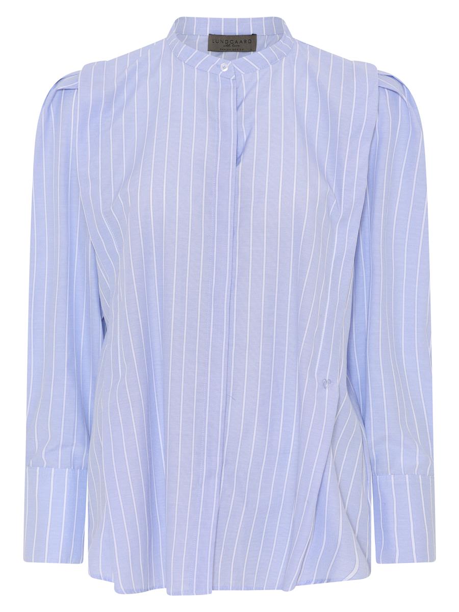 Smuk skjorte fra Lundgaard. Den har pufærmer og læg, som går fra skulderen og ned som en flot detalje.