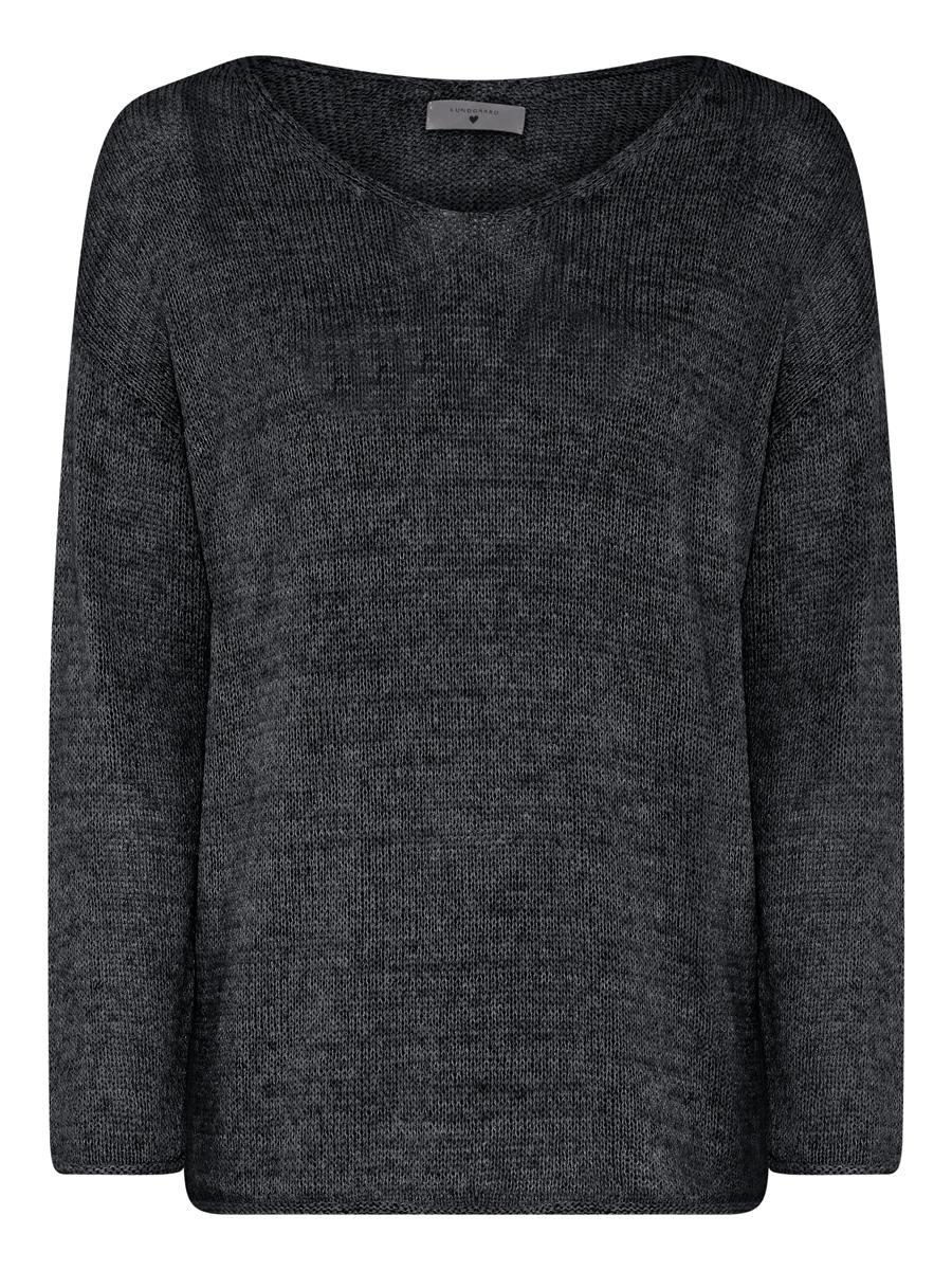 Strikken er med v-hals og er i en lækker hør-kvalitet.