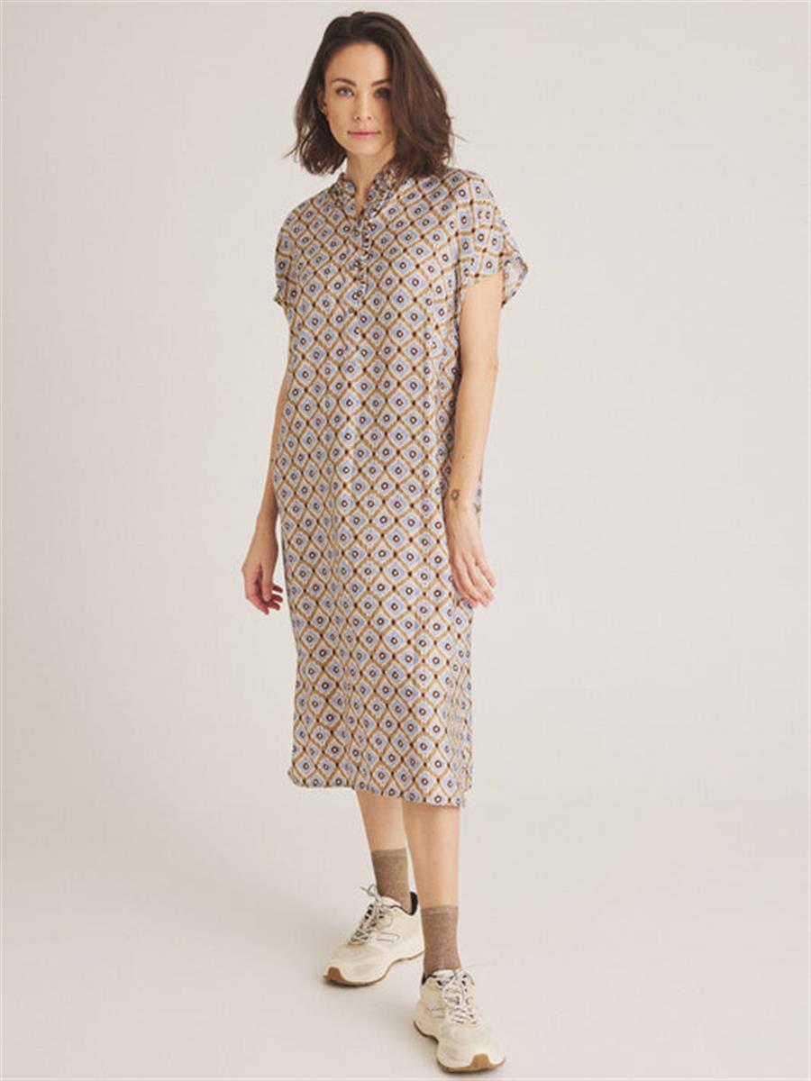 Kjole fra LUXZUZ // ONE TWO med et feminint og let look med broderi på forsiden, hvilket tilføjer en smuk detalje. Kjolen har knapper og flæse foran samt korte ærmer. Skjorten har en løs pasform, der gør den både behagelig og stilfuld.