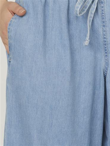 N.OSA-PA er en trendy denimbuks med brede ben, i et cool vasket denimlook. Buksen har en lomme i hver sidesøm, samt talje med elastik og snøre.