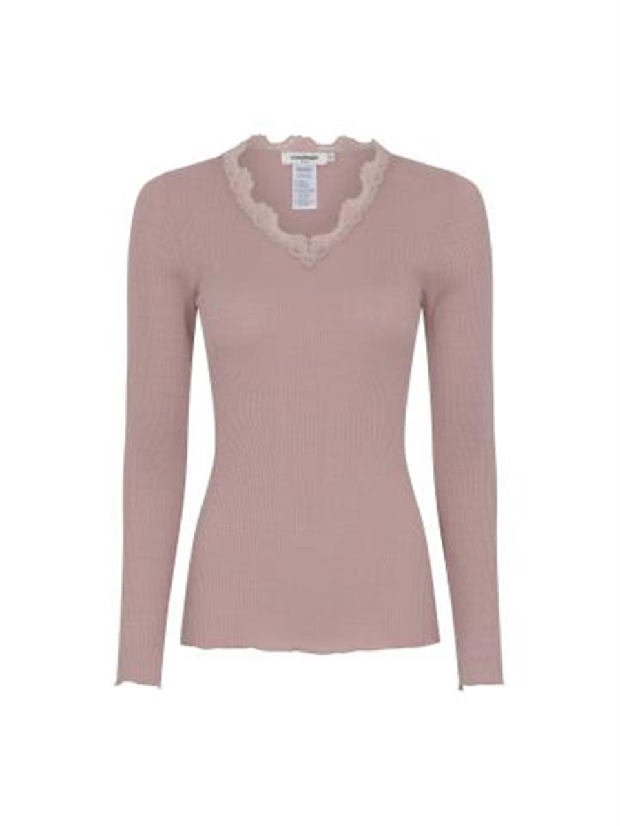 Silkebluse fra Soulmate i med en smuk blondekant omkring den runde halsudskæring.