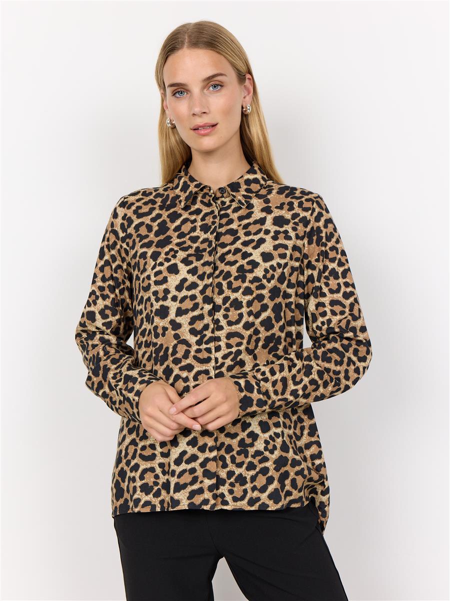 C-FLAVIA 3 er en leopardskjorte fremstillet af 100 % ECOVERO-viskose. Skjorten har en klassisk krave, skjult knapstolpe og manchetter med knapper samt et flatterende læg på ryggen. En alsidig skjorte, der kan bruges med de fleste underdele og fodtøj.