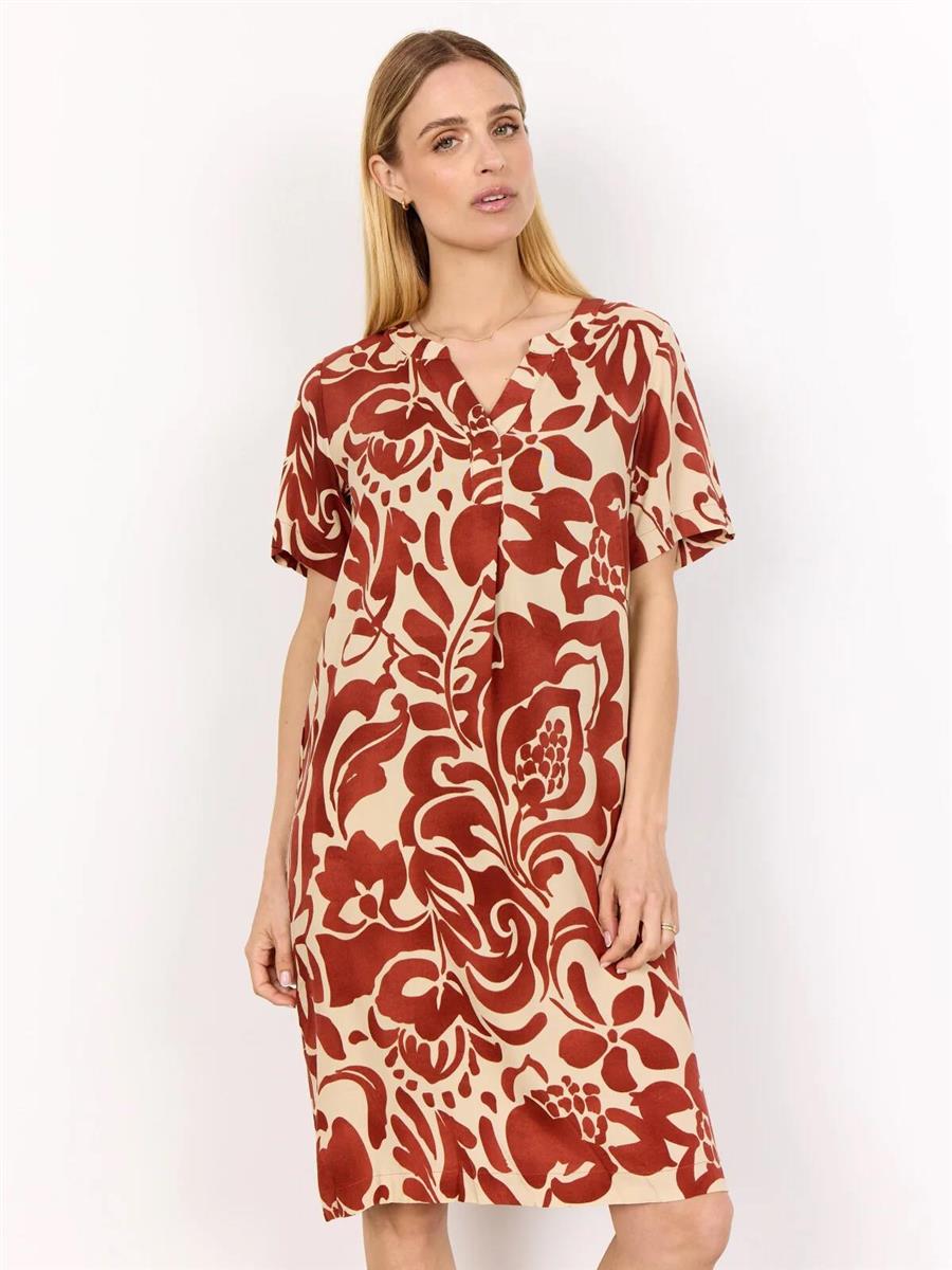 SC-SENTA 3 er en tunika fremstillet af 100 % LENZING™ ECOVERO™-viskose. Tunikaen har V-udskæring, korte ærmer og et dristigt blomsterprint og går til lige under knæet med en lige kant.