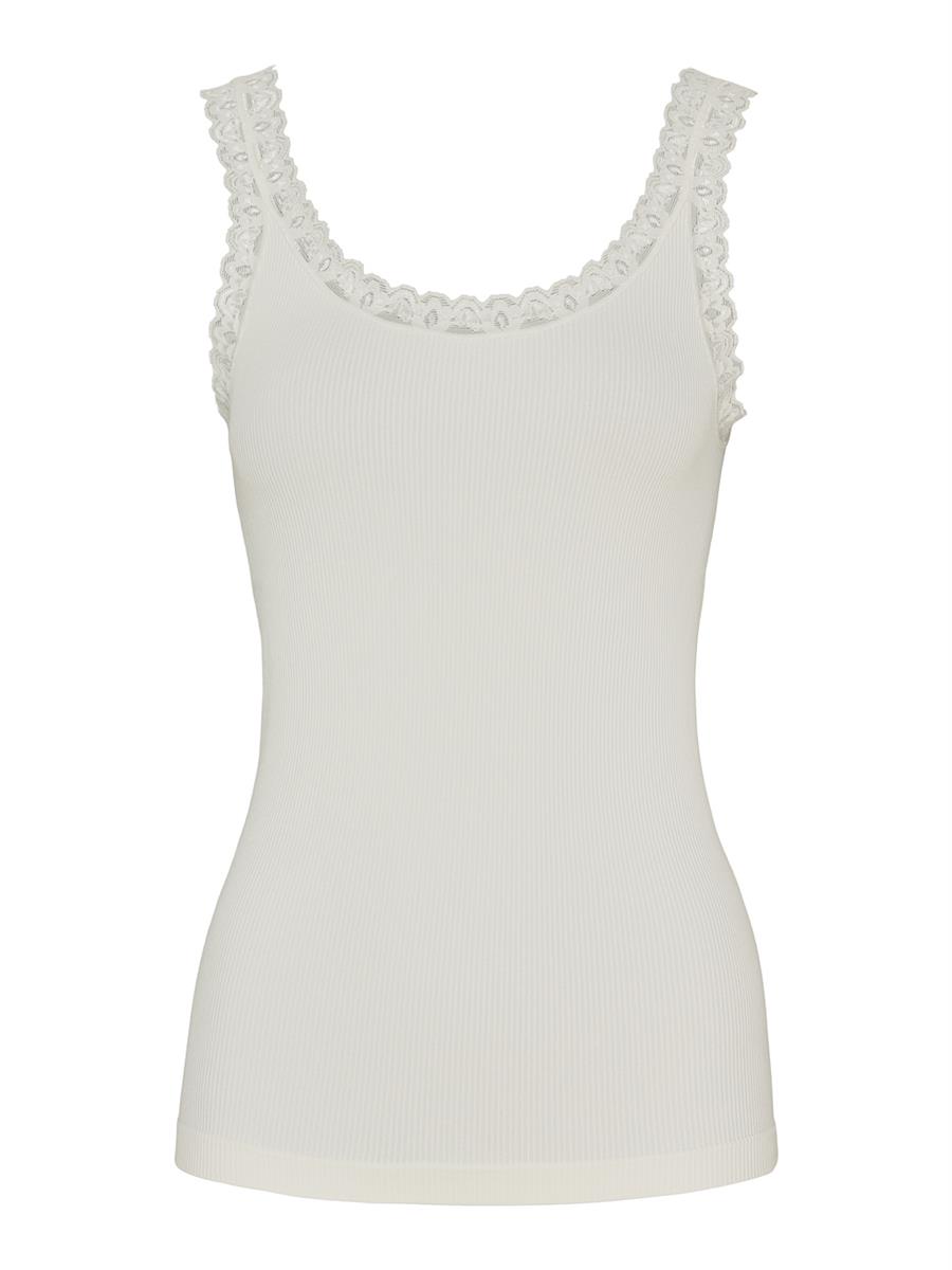 Lækker microfiber rib-top fra Tim & Simonsen med fin blondekant og rund halsudskæring.