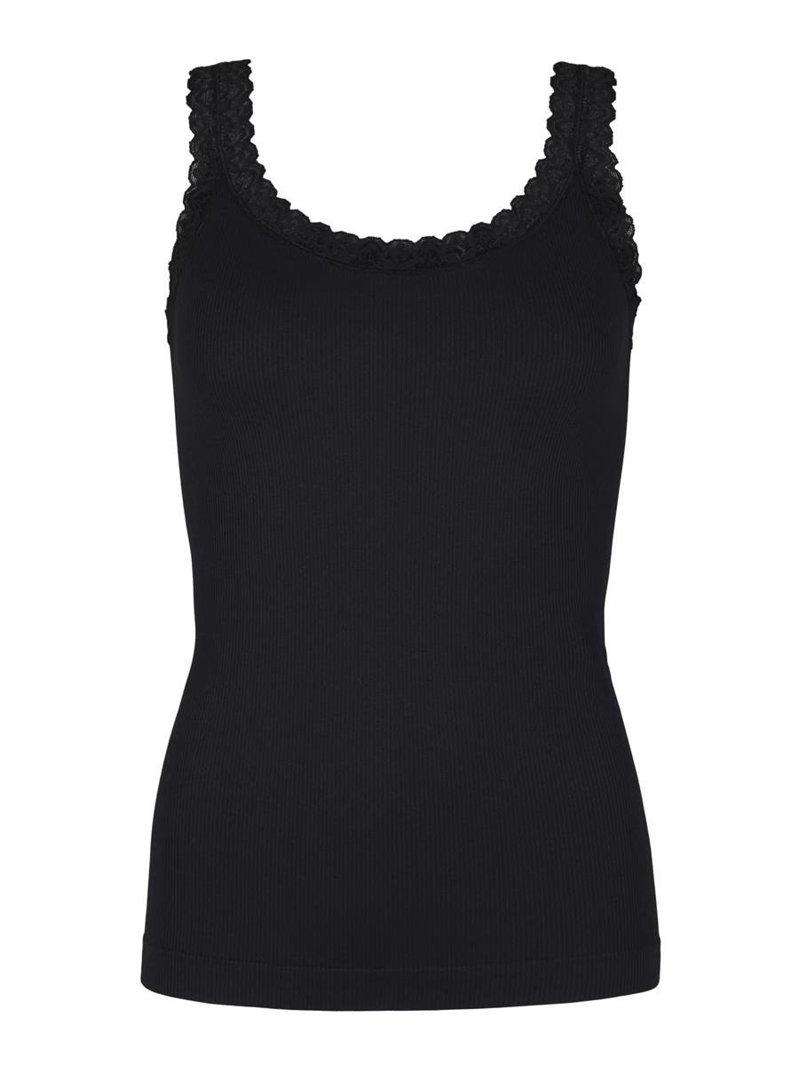Lækker microfiber rib-top fra Tim & Simonsen med fin blondekant og rund halsudskæring.